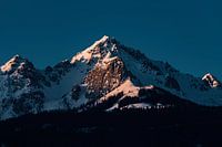 Zonsondergang op schitterende berg in de Oostenrijkse alpen. Sfeervolle foto van het laatste daglicht op de nockspitze, een berg bij de stad Innsbruck.