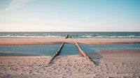 Bedekte paalhoofden tijdens zonsondergang bij Oranjezon in Zeeland.