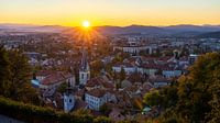 Zonsondergang vanaf de kasteelheuvel in Ljubljana in Slovenië.