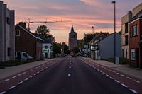 Een Belgisch dorpje op de grens, een verlaten weg en een mooie zonsondergang