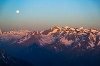 Koop de foto Zonsondergang over besneeuwde bergtoppen in de alpen van Hidde Hageman op canvas, aluminium dibond, (ingelijste) fotoprint, behang en ArtFrame, op maat geprint in Fine-Art kwaliteit.