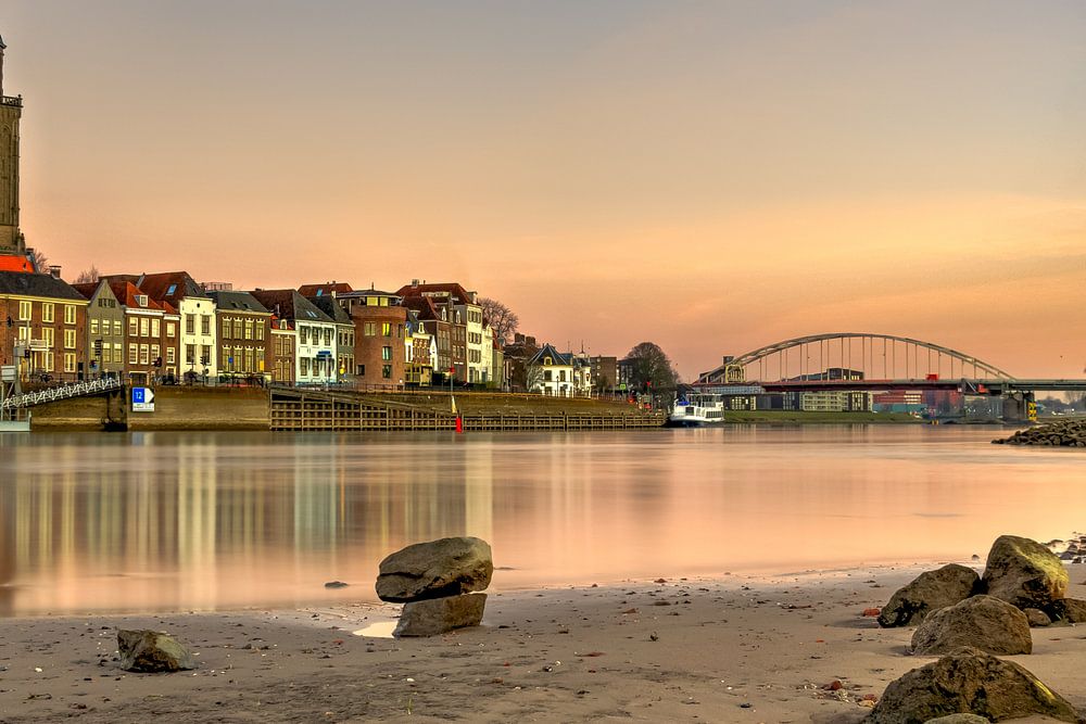 Zonsondergang over de IJssel bij de prachtige historische stad Deventer.