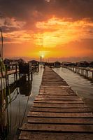 De foto toont deze huizen in de ondergaande zon, de pieren of steigers moeten het beeld inleiden. de kleuren en de unieke avondsfeer maken het totaalplaatje compleet. Ik ging speciaal naar deze plek in de avonduren om deze sfeer precies zo vast te leggen.