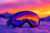 Over ‘Zonsondergang over skibril in de sneeuw’ van Poster Art Shop