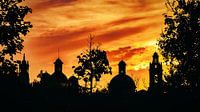 Zonsondergang met silhouet in de oude stad van Valencia Spanje