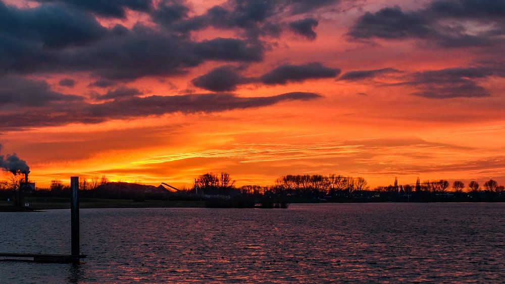 Prachtige kleuren tijdens de zonsondergang boven de Rhederlaag in Lathum.