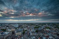 Zonsondergang Utrecht stad vanaf de Domtoren! Magnifiek uitzicht met wolken pracht tijdens het blauwe uurtje vanaf het hoogste punt van Utrecht!
