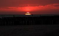 Rode zonsondergang - De hemel kleurde vuurrood op het strand van Westkapelle,de zon zou langzaam in de zee verdwijnen.