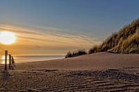 Foto van het strand gemaakt tijdens zonsondergang.
