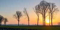 Zonsondergang tijdens een koude winterdag in de regio IJsseldelta in Overijssel, Nederland in de Melmerpolder bij de stad Kampen.