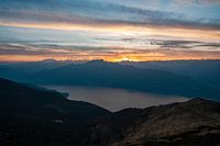 Zonsondergang van het Lago Maggiore naar de Dufour-piek