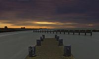 Zonsondergang vanaf een steiger op het Ijsselmeer nabij Lelystad.