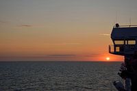 Soepel zeilen op de Noordzee vanuit Nederland richting het Verenigd Koninkrijk. De heldere hemel zorgde voor een mooie zonsondergang aan boord van de DFDS veerboot.