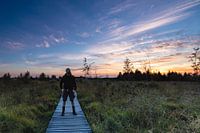 Selfie op het vlonder wandelpad op hoge venen België de Ardennen! Een van de hoogste punten van België. Zonsondergang bij een mooi scheef stuk.