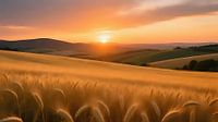 Een schijnbaar eindeloos tarweveld strekt zich uit als een gouden oceaan tot aan de horizon, elke stengel een fijne flikkering in het warme avondlicht. De korenaren wiegen zachtjes in de nazomerwind en maken een zacht, rustgevend geluid dat doet denken aan de branding. De grond is vruchtbaar en donker en op sommige plekken zijn smalle…