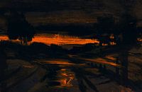 De zon gaat onder. Het laatste licht schijnt nog over het Zuid Limburgse heuvelland.