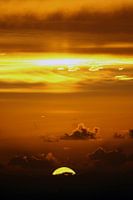 Het moment net voordat de zon achter de oceaan eronder gaat en verdwijn helemaal uit het zicht. Gefotografeerd tijdens mijn vakantie op de Canarische eiland La Palma.