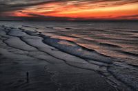 Het laatste restje zonlicht van de dag zorgde voor een vurige lucht en een subtiel licht en schaduwspel op de branding op het Scheveningse strand.