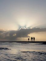 Strandwandeling tijdens zonsondergang