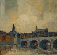 Het licht verdwijnt. De zon gaat onder boven de stad Maastricht met haar gelijknamige rivier. De skyline tekent zich scherp af tegen de lucht.