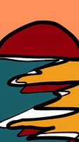 Een warme zomeravond met de reflectie van de zon in de zee. Een kleurrijk ontwerp voor aan de muur voor een warme sfeer.