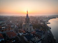 Op een frisse ochtend in maart 2025 baadt de toren van de Grote of Stephanuskerk in Hasselt in het zachte licht van de opkomende zon. De eerste stralen breken door de ochtendnevel en hullen het historische stadsgezicht in warme tinten van goud en oranje. De karakteristieke gotische toren, een herkenbaar baken in het landschap, steekt statig af tegen de kleurrijke ochtendhemel en ademt de rust en historie van dit oude Hanzestadje.