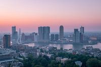 Rotterdam tijdens de eerste ochtendgloren.