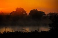 Een prachtige zonsopgang in het Kruger National Park, Zuid-Afrika. De ochtendmist lag over de Sabie rivier en droeg bij aan de magische sfeer.