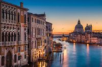 De zonsopgang van de winter bij het Grote Kanaal in Venetië, Italië