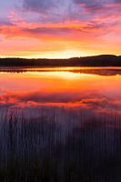 Op weg naar een heideveld passeerden we dit meer net toen de zon opkwam. Wat een kleurenspektakel bood de natuur hier!