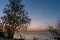 een prachtige zonsopgang bij een meer in Wolfsburg