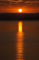 Elke ochtend ging ik vanuit ons huisje kijken naar de zonsopgang, rond 7:00u in de morgen. Met als resultaat dit prachtige beeld van de zon op het water.