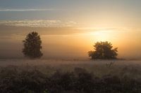 Een vroege zomermorgen boven de Heide. Deze foto is gemaakt bij Vierhouten/Gortel in de zomer van 2017. Een prachtige zomermorgen met wat lichte mist zorgt voor een sprookjesachtig verlichtte heide.