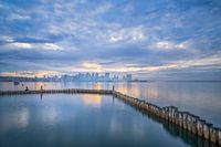 Een groothoekperspectief van de haven van San Diego met de skyline op de achtergrond. Ik heb echt genoten van de blauwe tinten die deze zonsopgang opleverde. Bedankt voor je interesse in mijn werk.