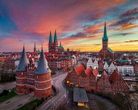 Zonsopgang bij de Holstentor in Lubeck, Duitsland