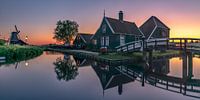 Het idyllische museumdorp en openluchtmuseum Zaanse Schans in het noorden van Nederland kort na zonsopgang