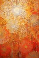 Dit werk straalt de warmte en energie van een zonsopgang uit, met stralende patronen in oranje en geel. De cirkelvormige ontwerpen suggereren opkomende zonnen en geven het gevoel van een nieuwe dag die aanbreekt. De subtiele nuances van licht en schaduw zorgen voor een levendige textuur en dynamiek, terwijl de heldere kleuren een gevoel van vreugde en optimisme oproepen. Dit werk past goed in een ruimte die baadt in natuurlijk licht en zal een gevoel van warmte en positiviteit toevoegen aan elk interieur.