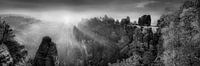 * AUTUMN SUN * Zwart-wit landschapsfoto. Zonsopgang aan de Bastei bij Lohmen tussen Rathen en Wehlen in Saksen.