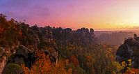 Idyllische zonsopgang in Saksisch Zwitserland bij de Basteirots