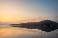 Zonsopgang in Seedorf am Schaalsee met wolken en weerspiegeling.