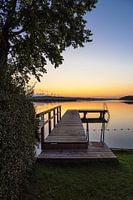 Zonsopgang in Seedorf am Schaalsee met zwemsteiger.
