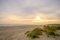 Zonsopgang in de duinen op het waddeneiland Texel op de noordpunt van het eiland met uitzicht op de Waddenzee en Vlieland.