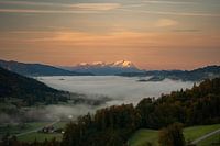 Zonsopgang in de herfst bij Oberstaufen met uitzicht op de Säntis