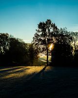 Zonsopgang in een park in Utrecht. Bij deze versie heb ik de kleuren iets feller gemaakt waardoor de foto er meer uitspringt. Het gras is nog bevroren waardoor de zonnestralen heel mooi over het gras schijnt. Echt een mooi begin van de dag.