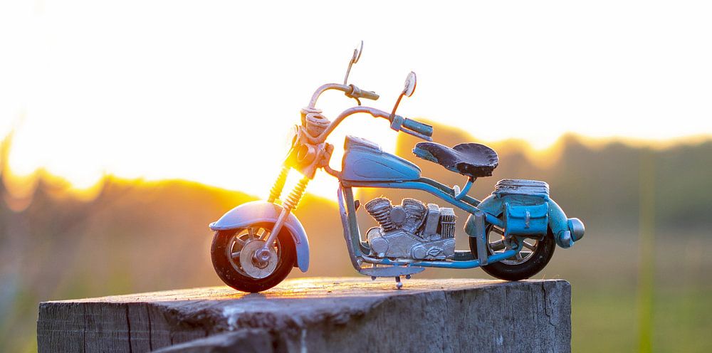 Het was eigenlijk een foto-opdracht, zonsopgang. De motor heb ik er als props bij bedacht.