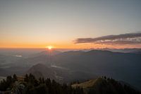 Zonsopgang op de Grünten met uitzicht op de Grüntensee en de Zugspitze
