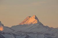 Schreckhorn met alpengloren in de Berner Alpen Zwitserland bij zonsopgang