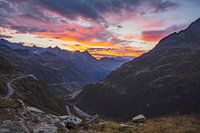 Op de Sustenpas tovert de zon de hemel in een kleurenzee. Het uitzicht van Meiental Canton Uri liggend in de vallei.