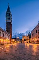 Blauw uur op het verlaten San Marcoplein in Venetië