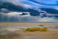 Koop dit landschapskunstwerk Zonsopgang op het strand van Texel met een naderende onweerswolk van Sjoerd van der Wal Fotografie op canvas, aluminium dibond, (ingelijste) fotoprint, behang en ArtFrame, op maat geprint in Fine-Art kwaliteit.